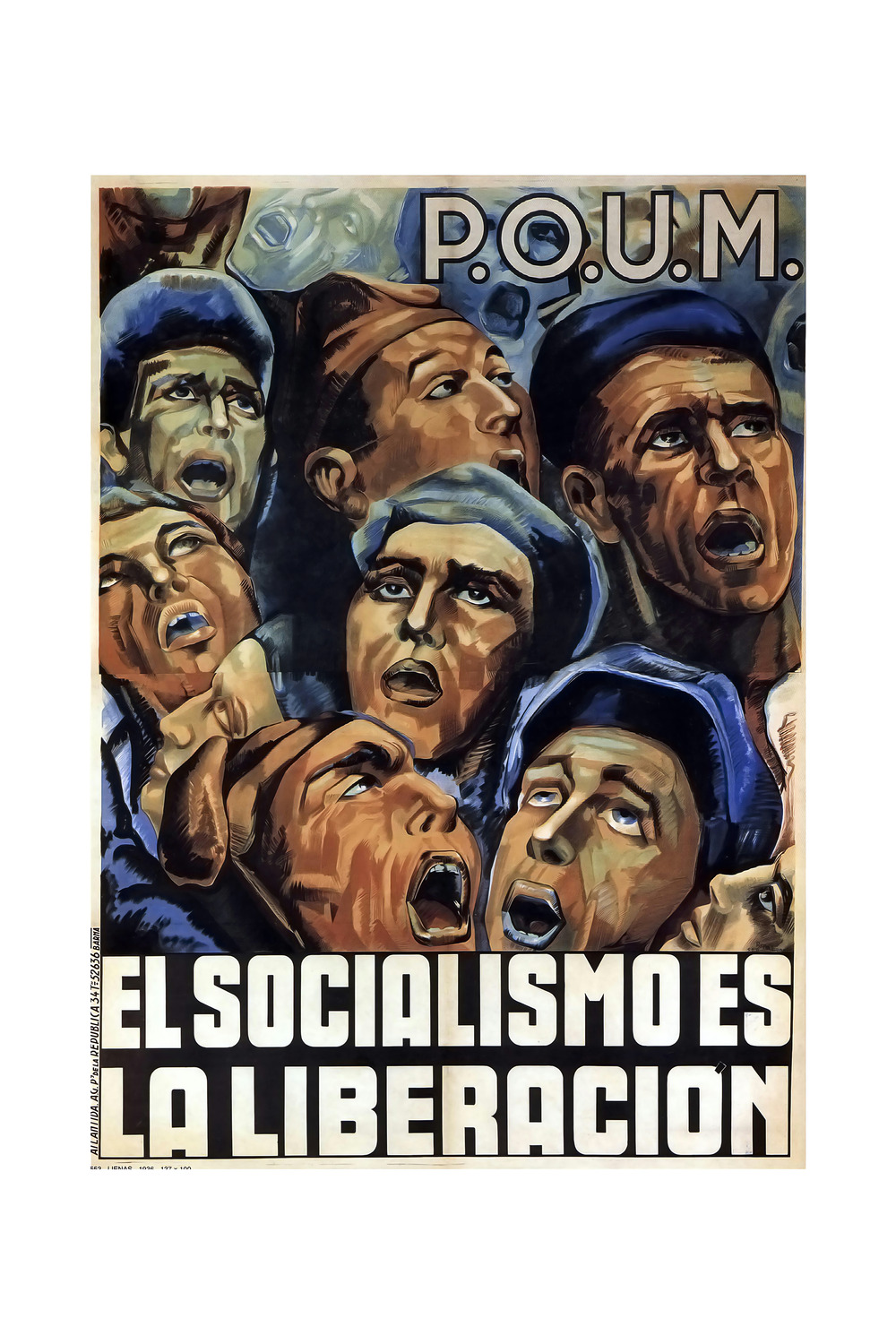 The Branding: The acronym P.O.U.M. is displayed prominently at the top right, identifying the political affiliation of the subjects.
